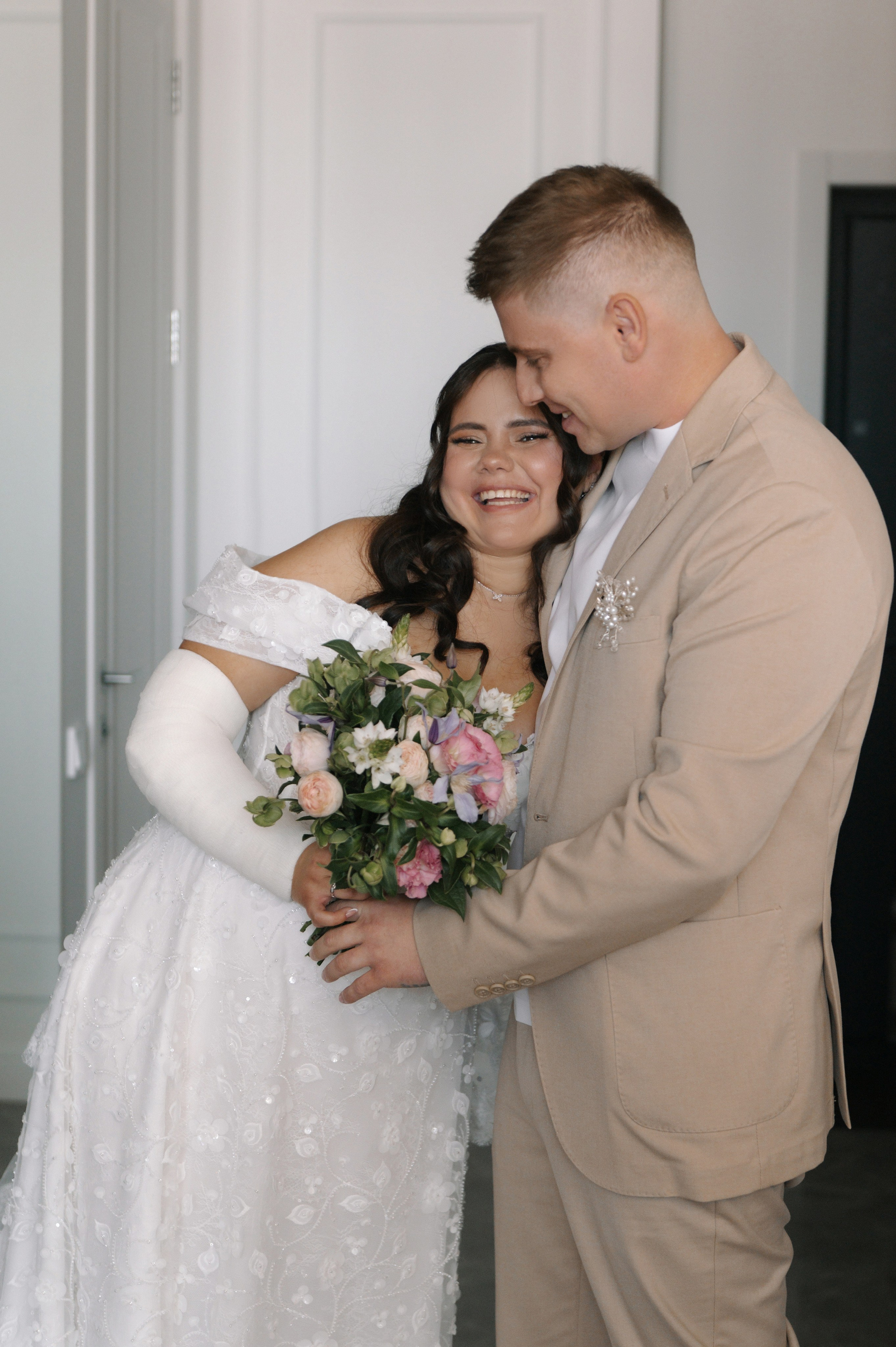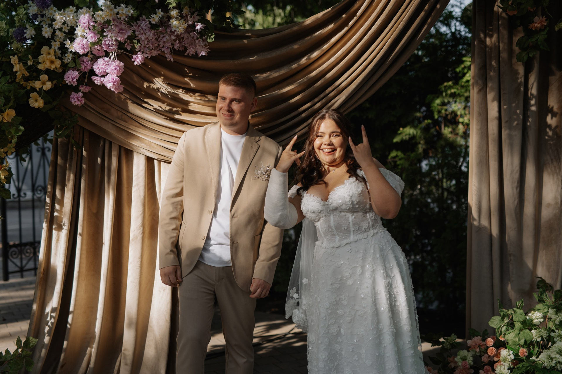 Под открытым небом, среди улыбок близких и тёплого ветра, Миши и Кристина показали всем простой и мощный пример: трудности не отменяют радость, а лишь подчёркивают её ценность. Гипс на руке Крис не стал преградой — лишь ещё одним штрихом к их истории. Свадьба ребят была не про идеальные обстоятельства, а про искренние чувства, живые эмоции и умение находить счастье в каждом моменте.