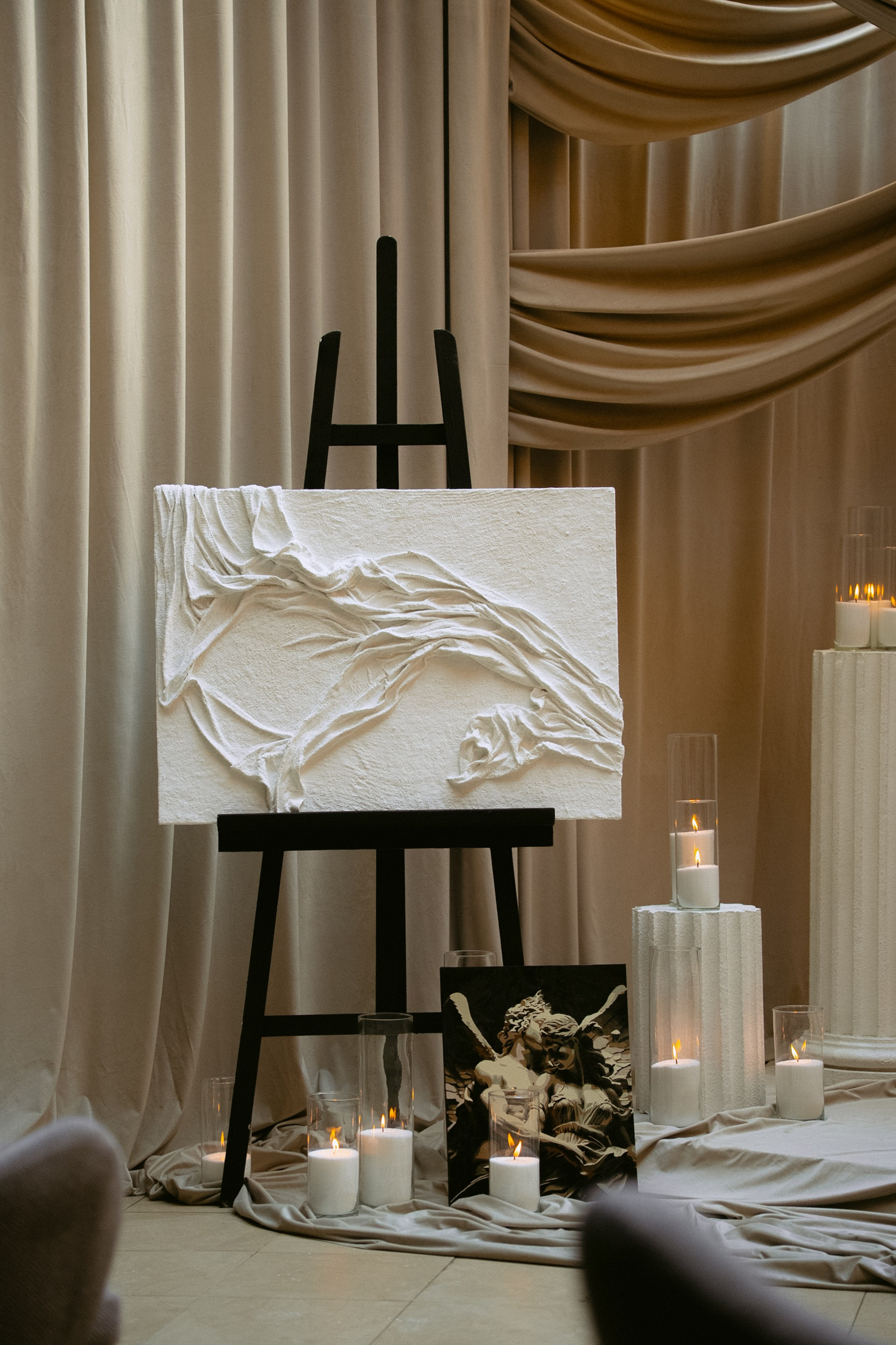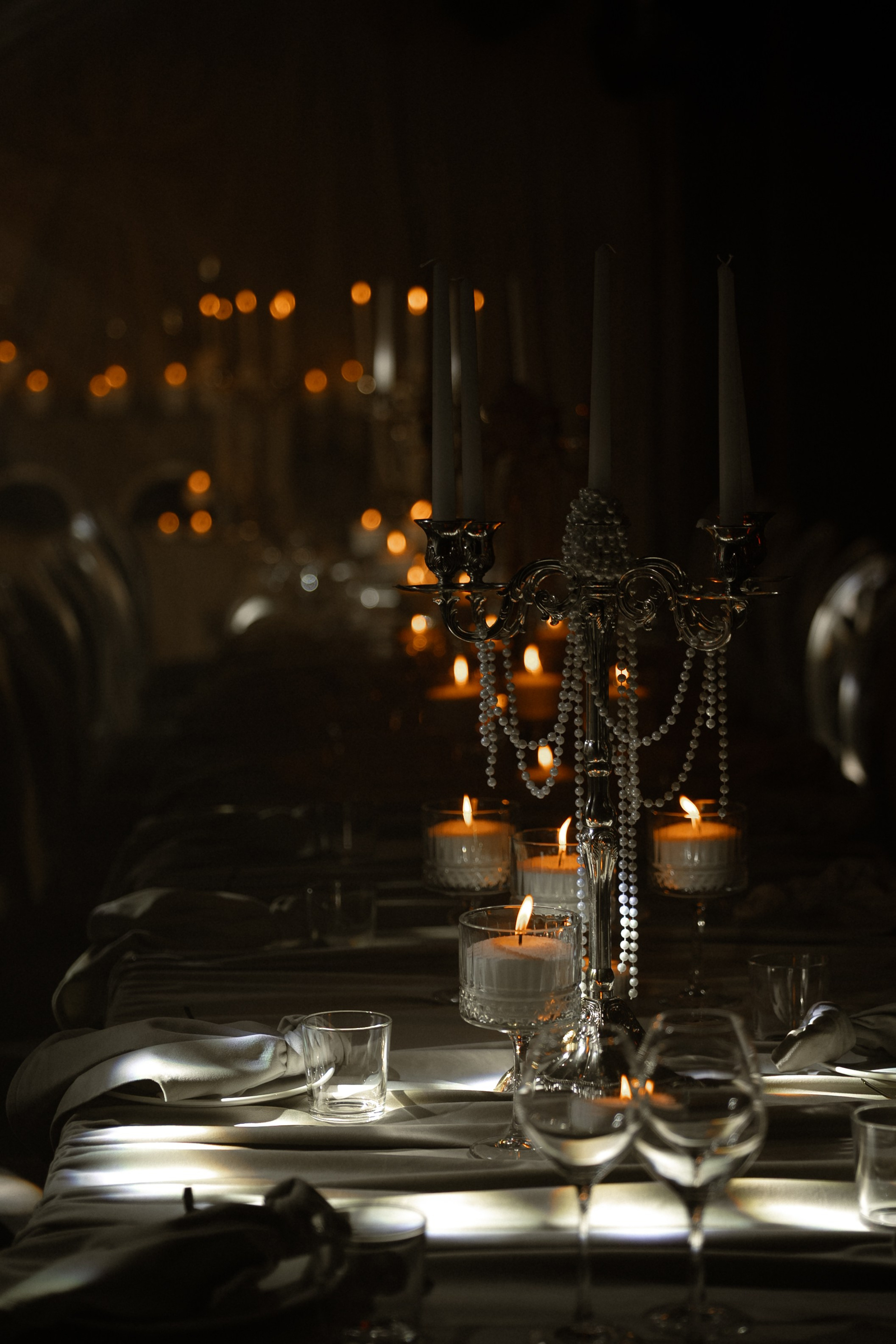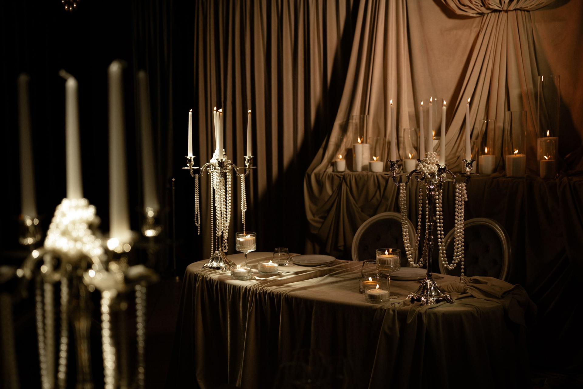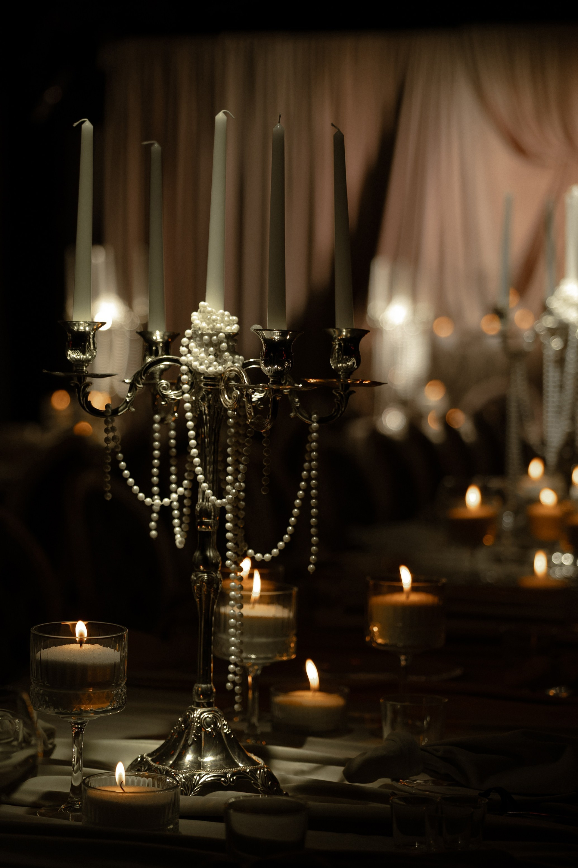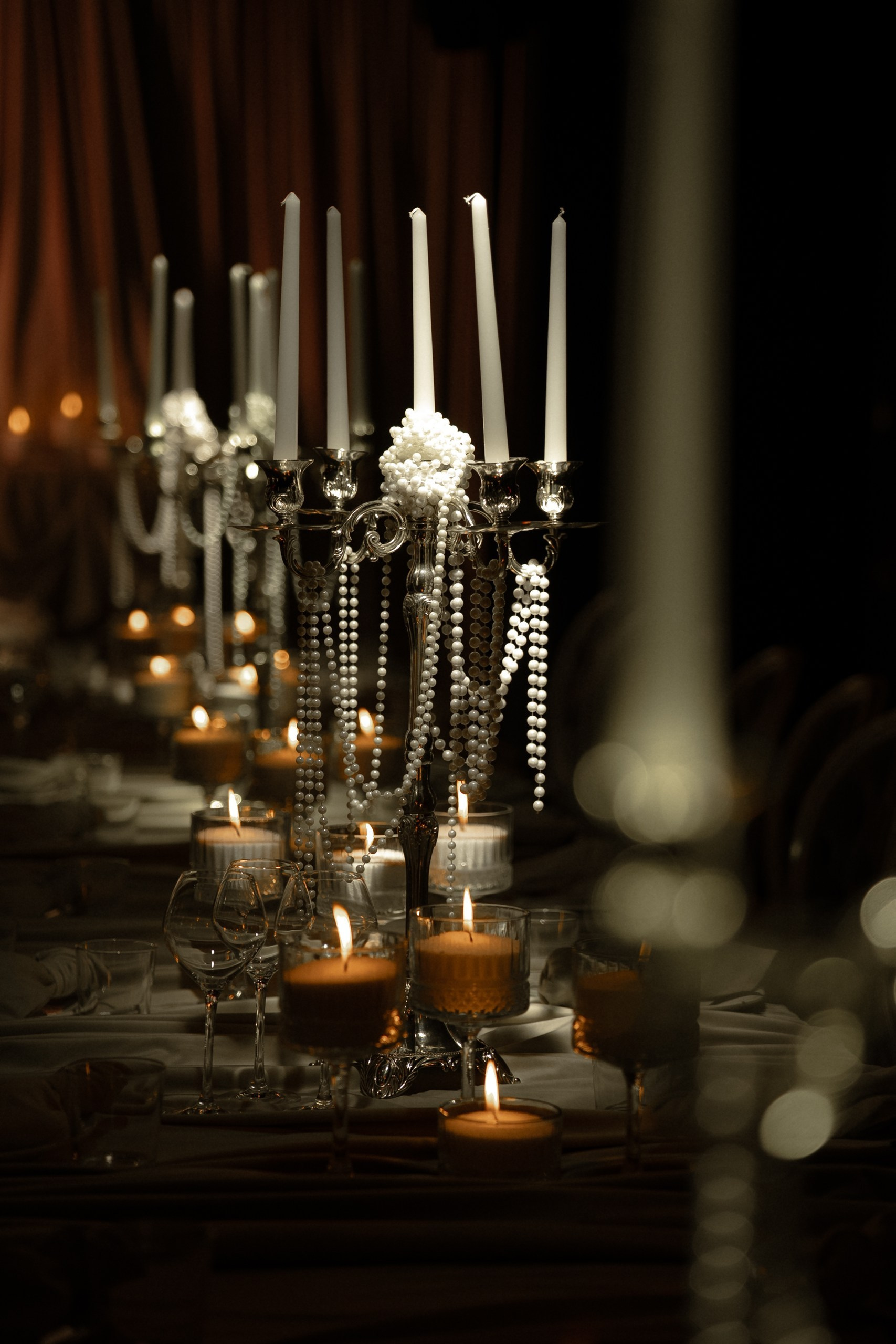 В декоре свет раскрывался через разные формы: живое пламя свечей, жемчуг с мягким отражением, струящиеся ткани