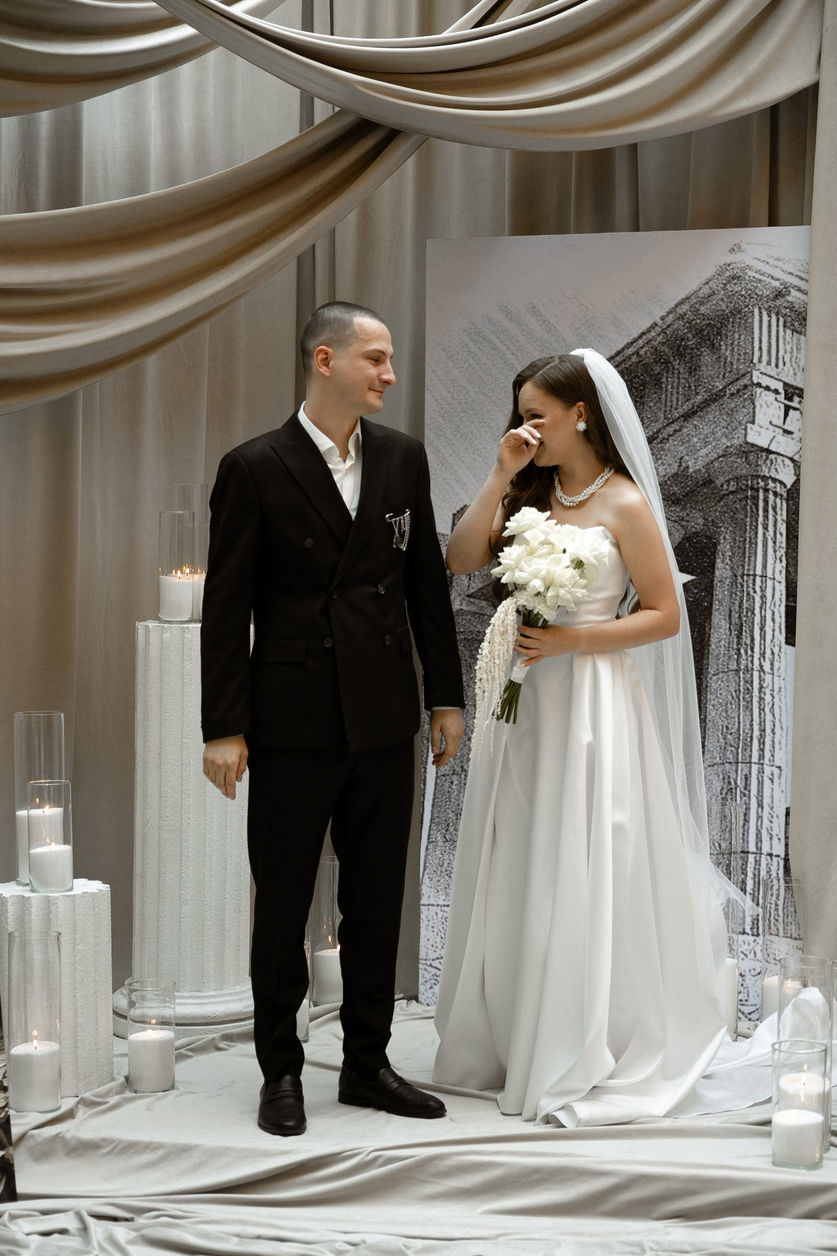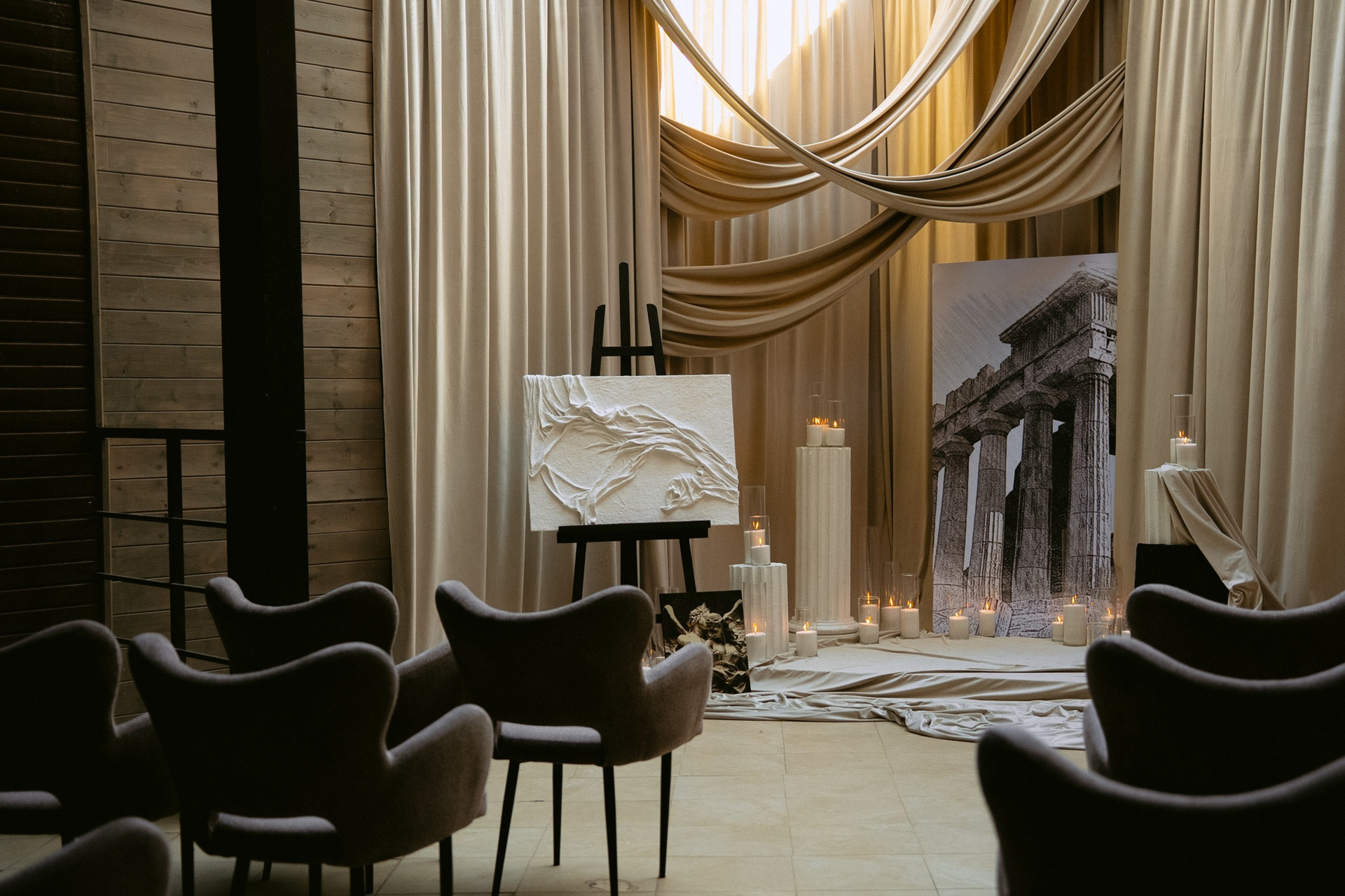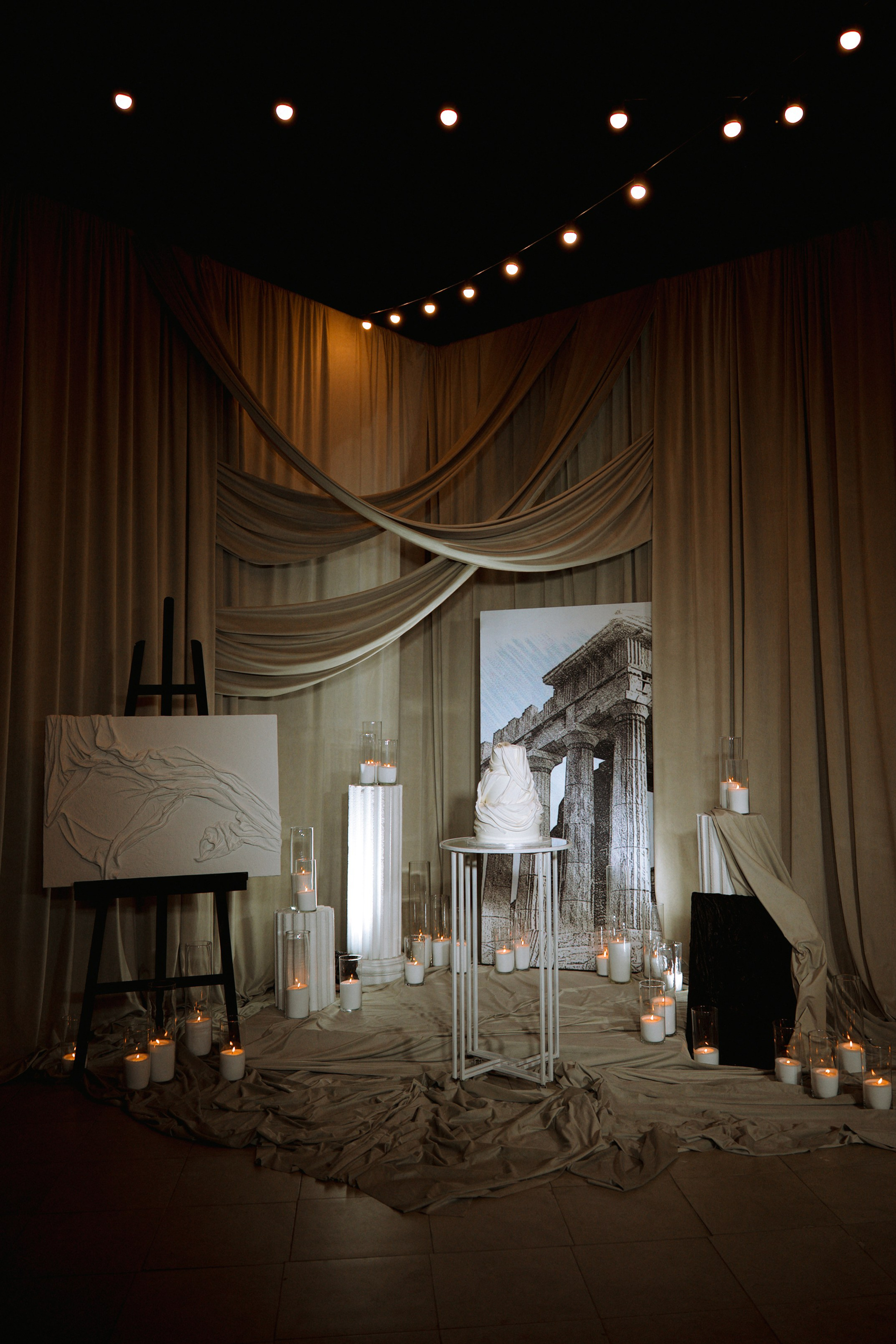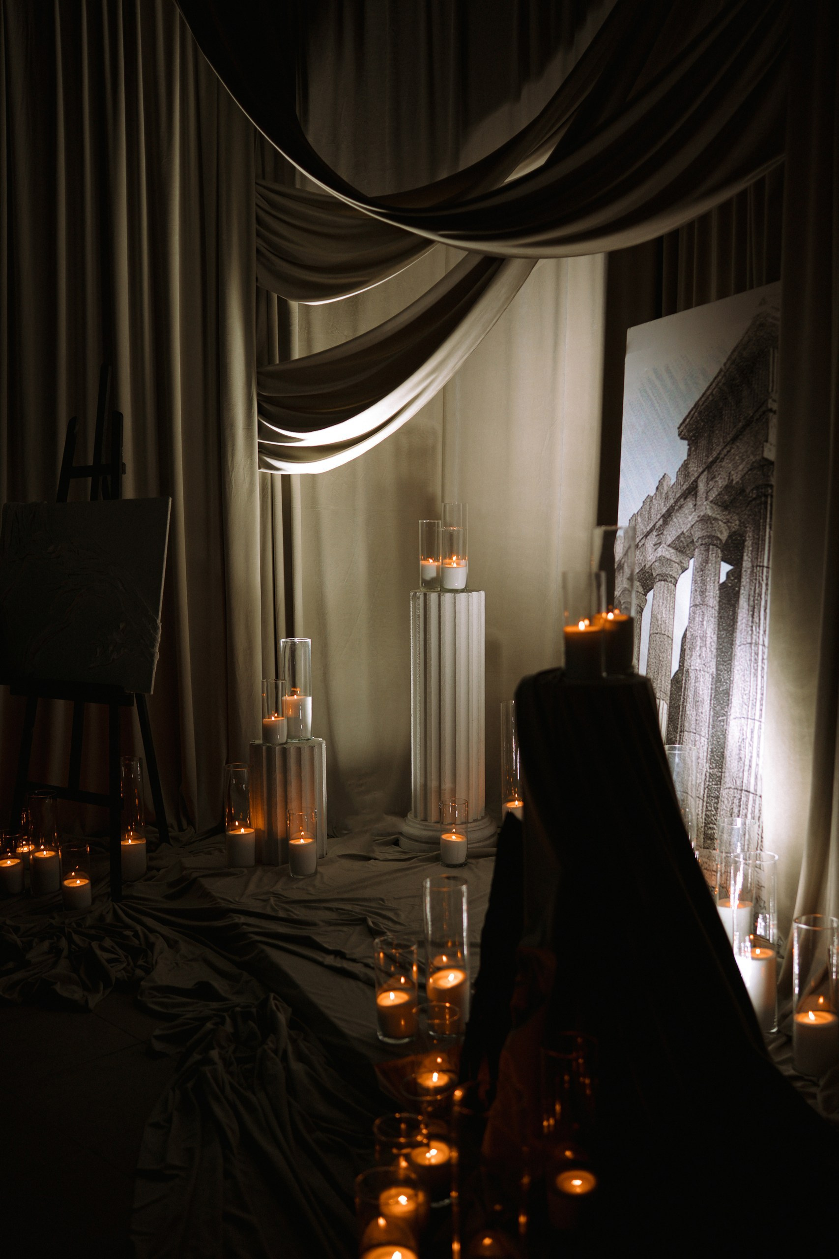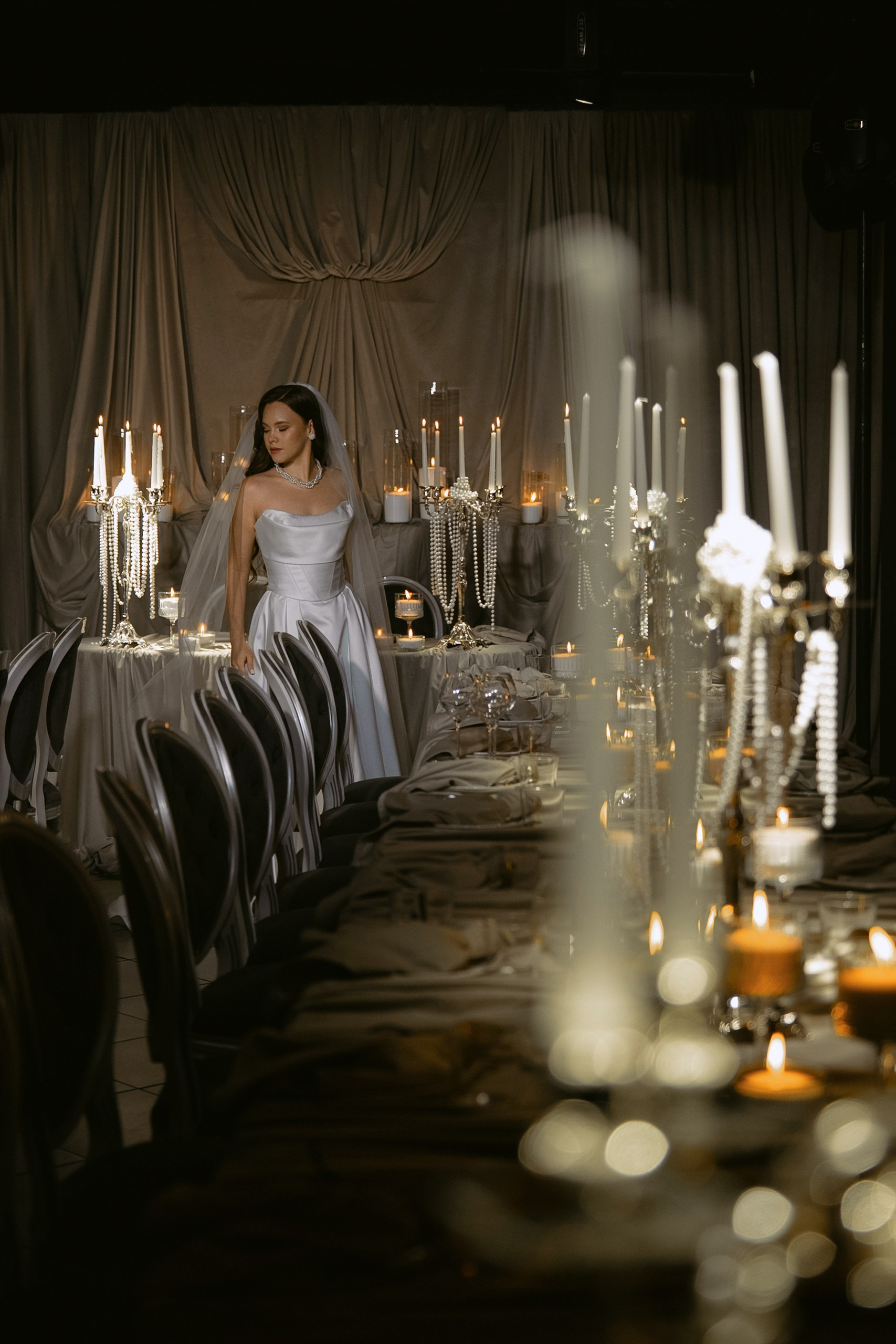 В декоре свет раскрывался через разные формы: живое пламя свечей, жемчуг с мягким отражением, струящиеся ткани