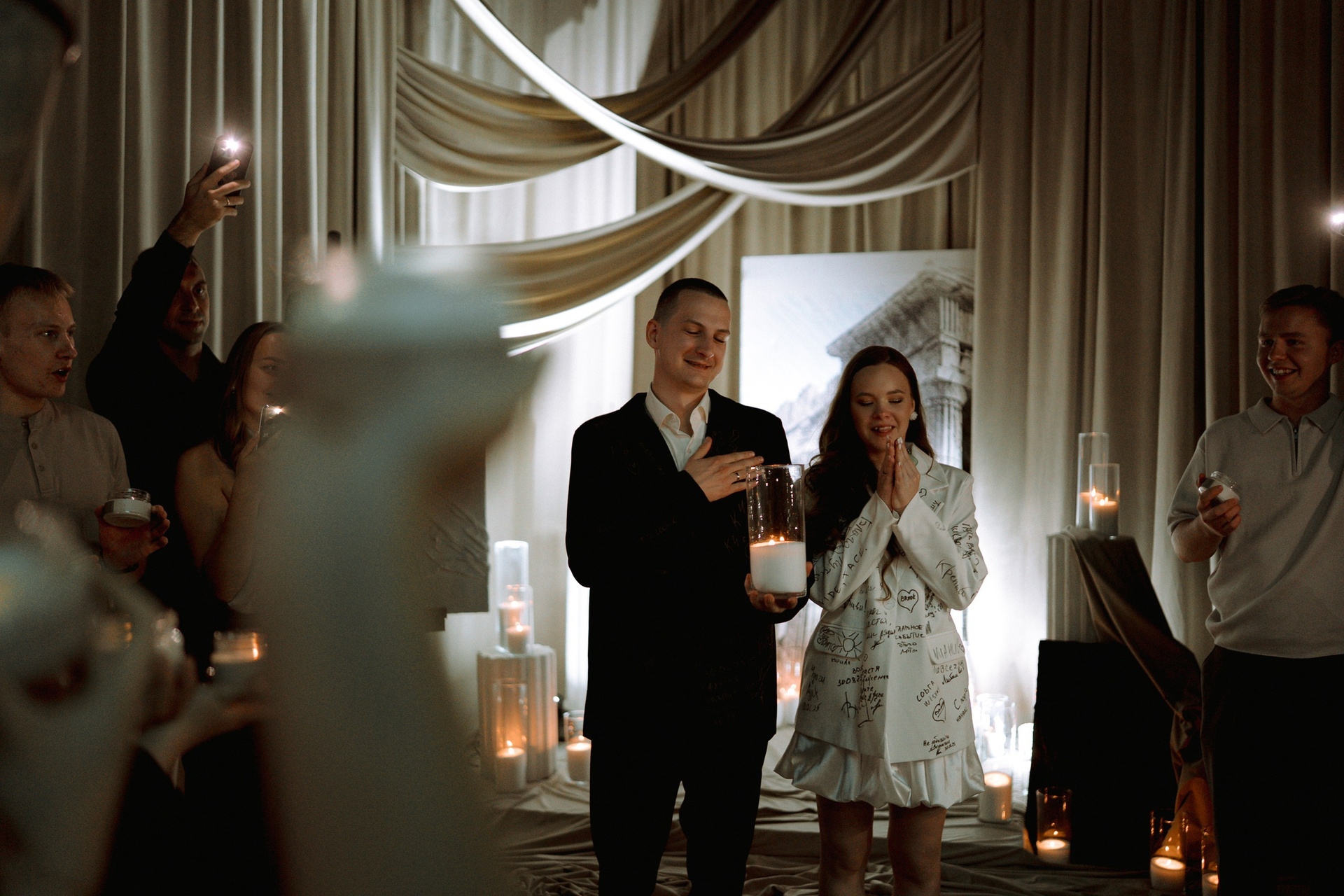 Для каждого гостя Миша и Арина подготовили подарки — свечи, изготовленные своими руками