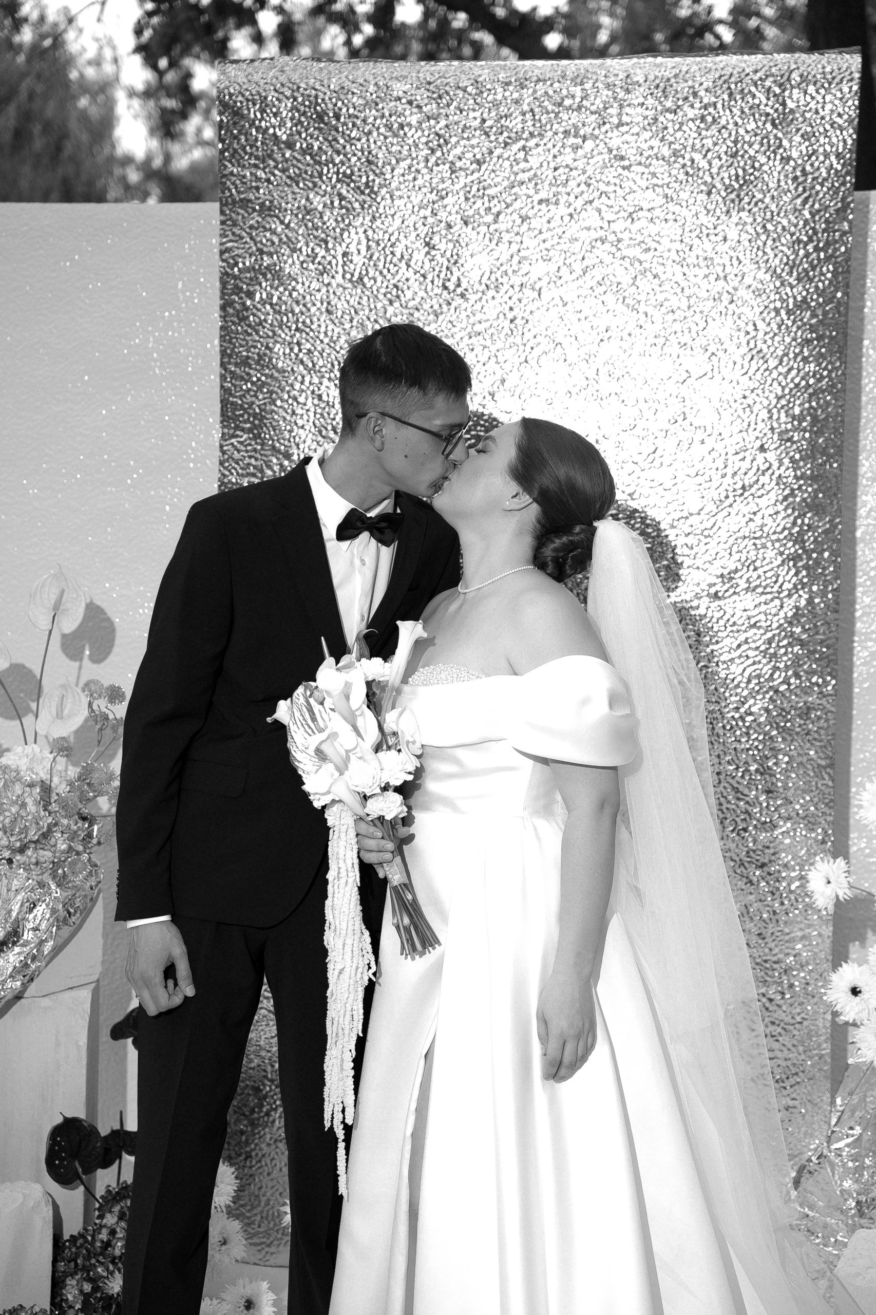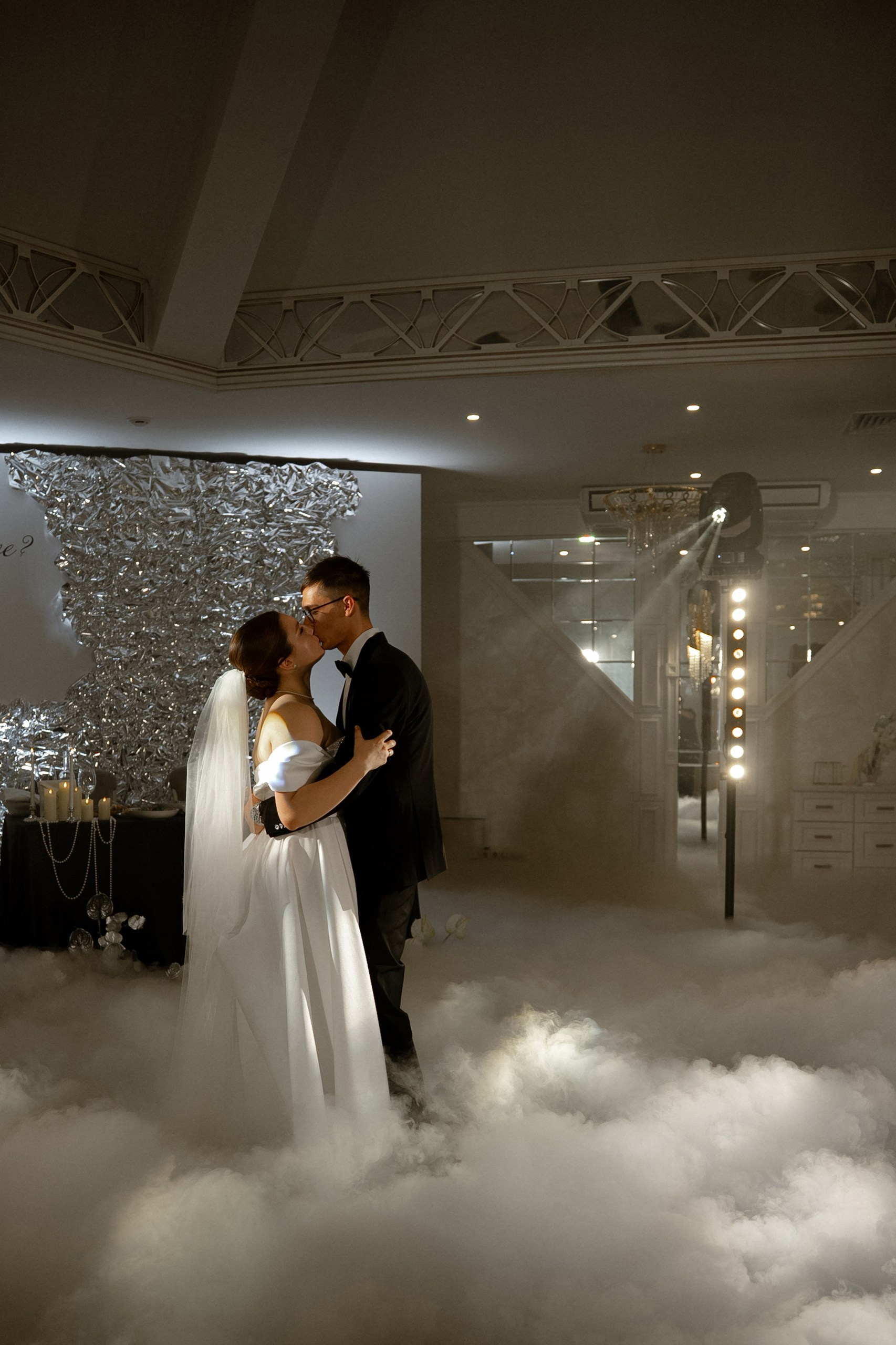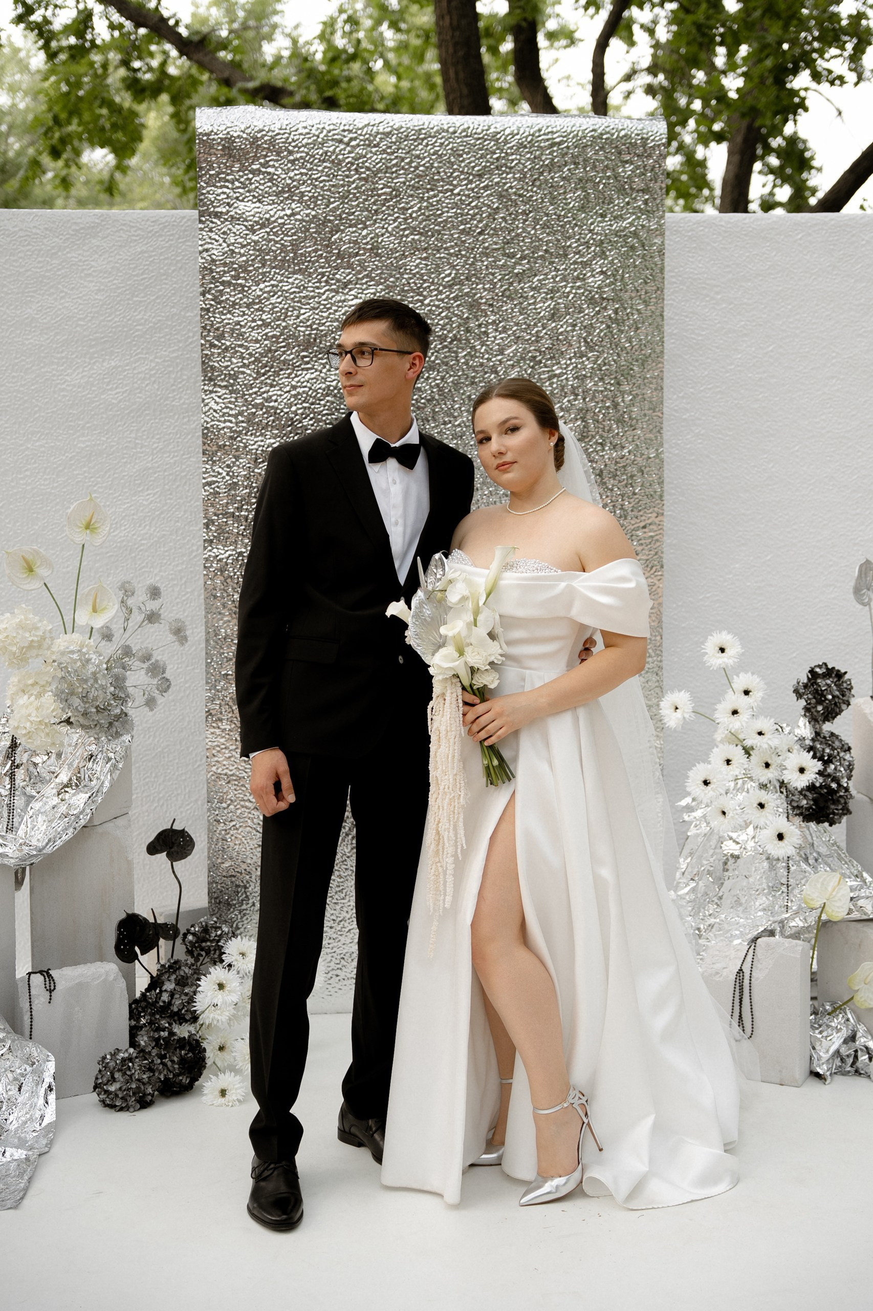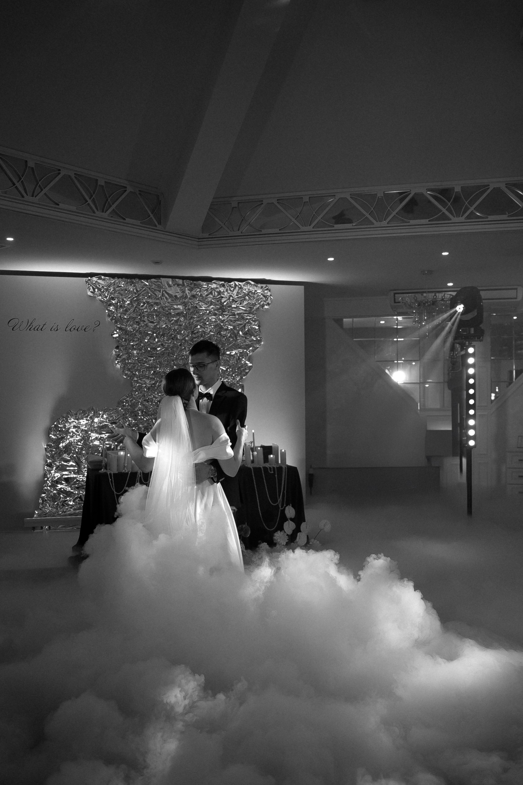 Свадьба Яны и Наримана — это история про чувства без лишних слов. Название «What is Love?» выбрано неслучайно — это любимая песня пары. Именно под неё Яна и Нариман впервые появились перед гостями, задав тон всему вечеру. В этот день все строилось на контрастах: чёрный и серебро, игра фактур от жемчуга до фольги и графичный чёрно-белый дресс-код гостей. Трогательный танец невесты с папой и живые, спонтанные эмоции.