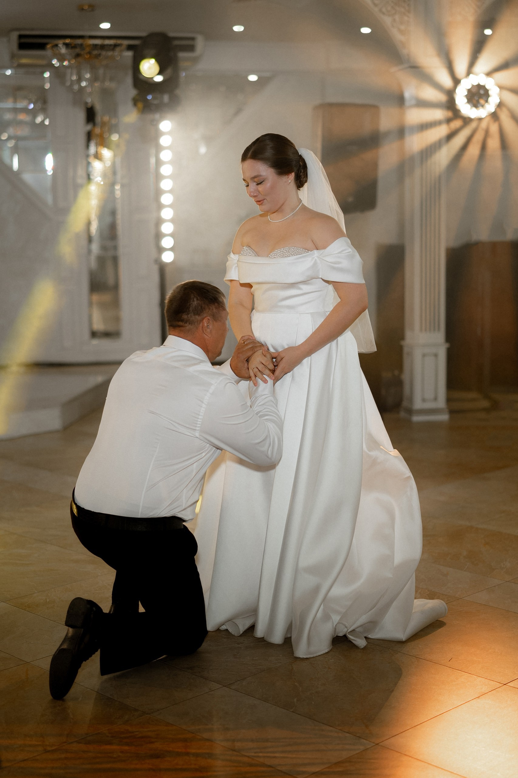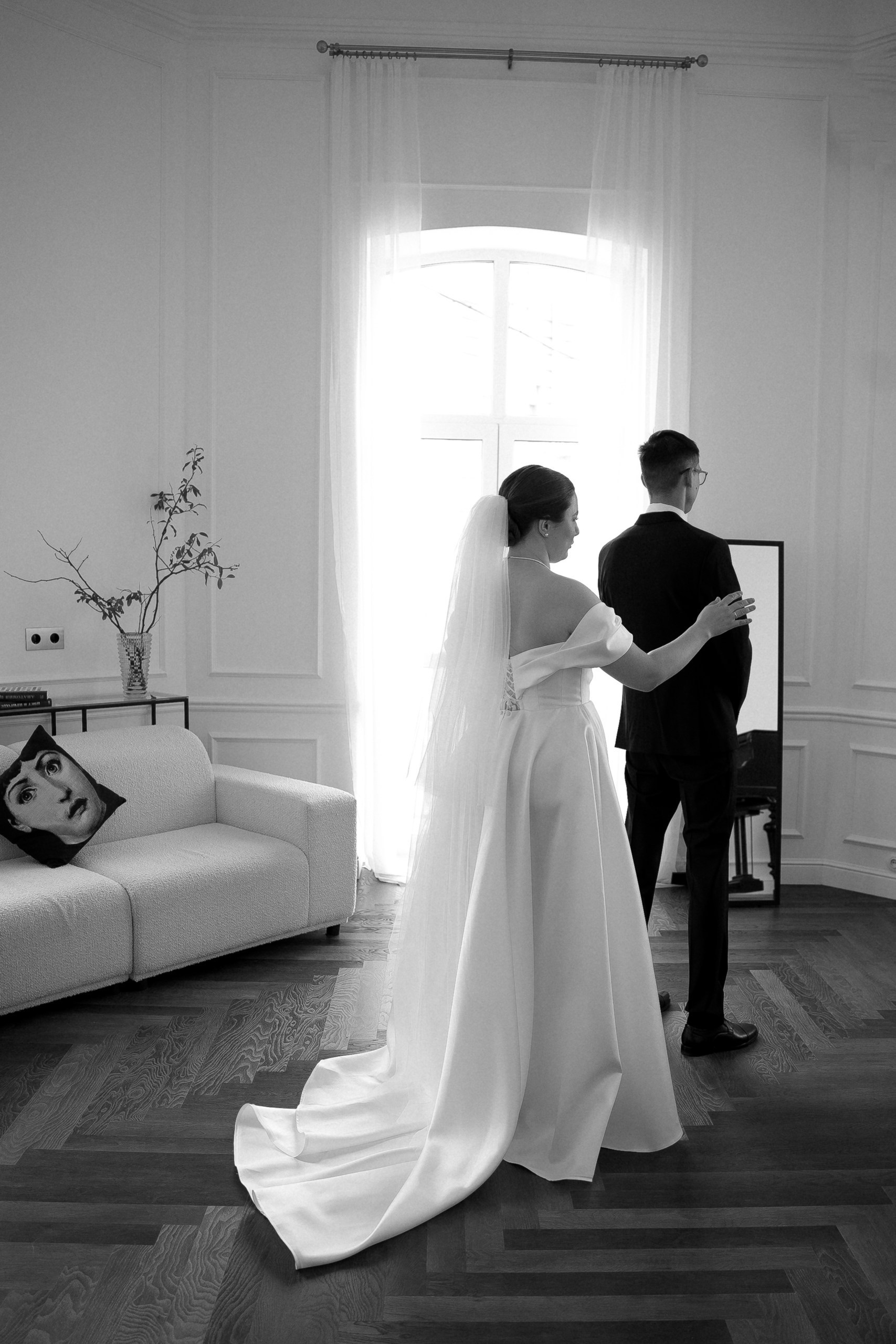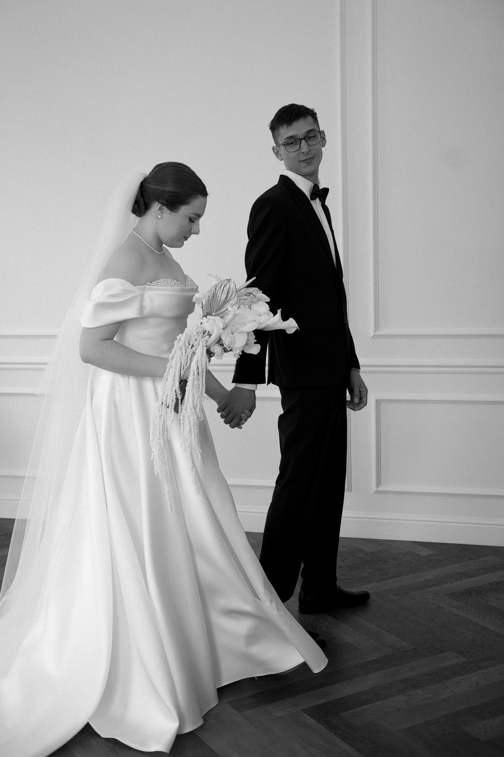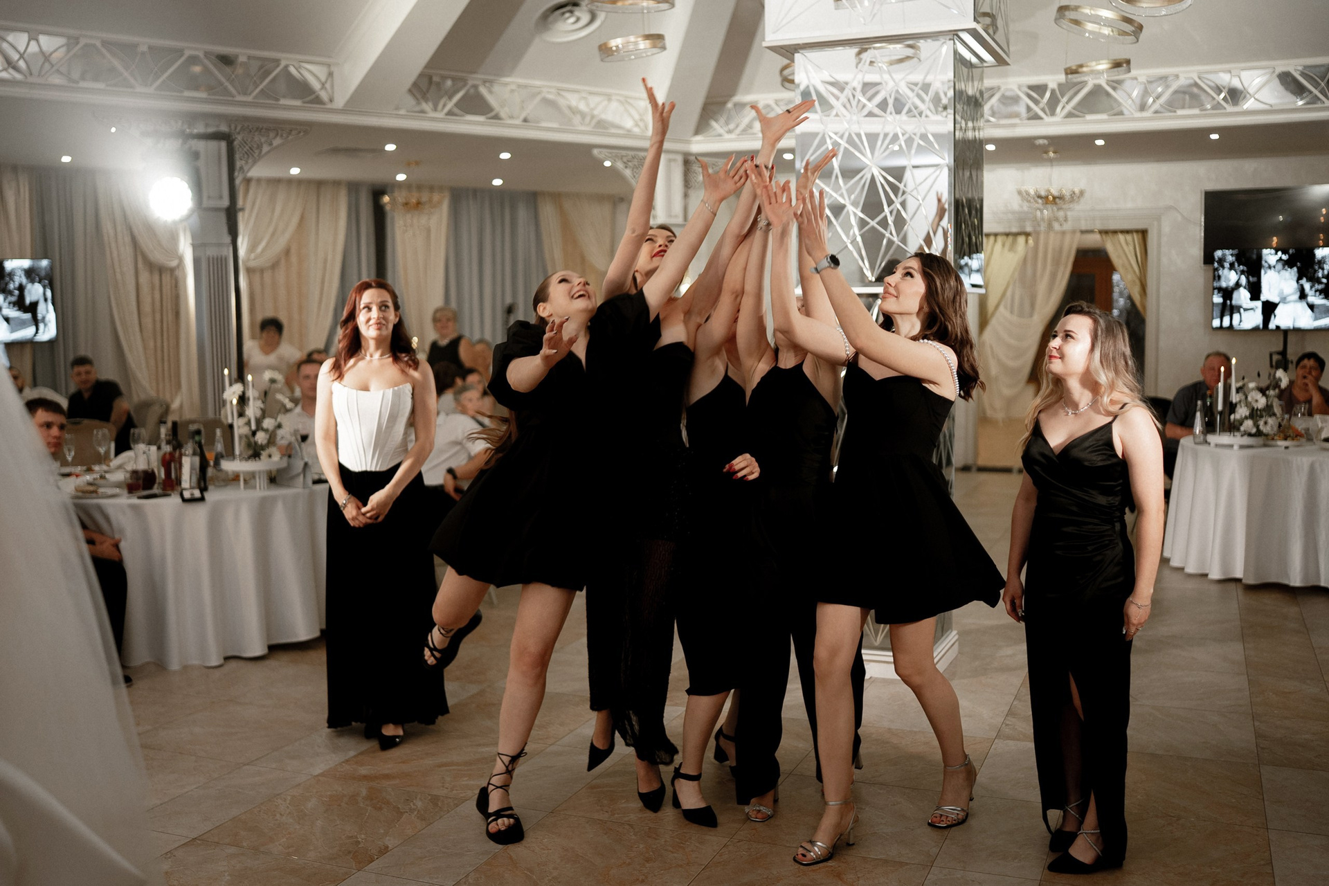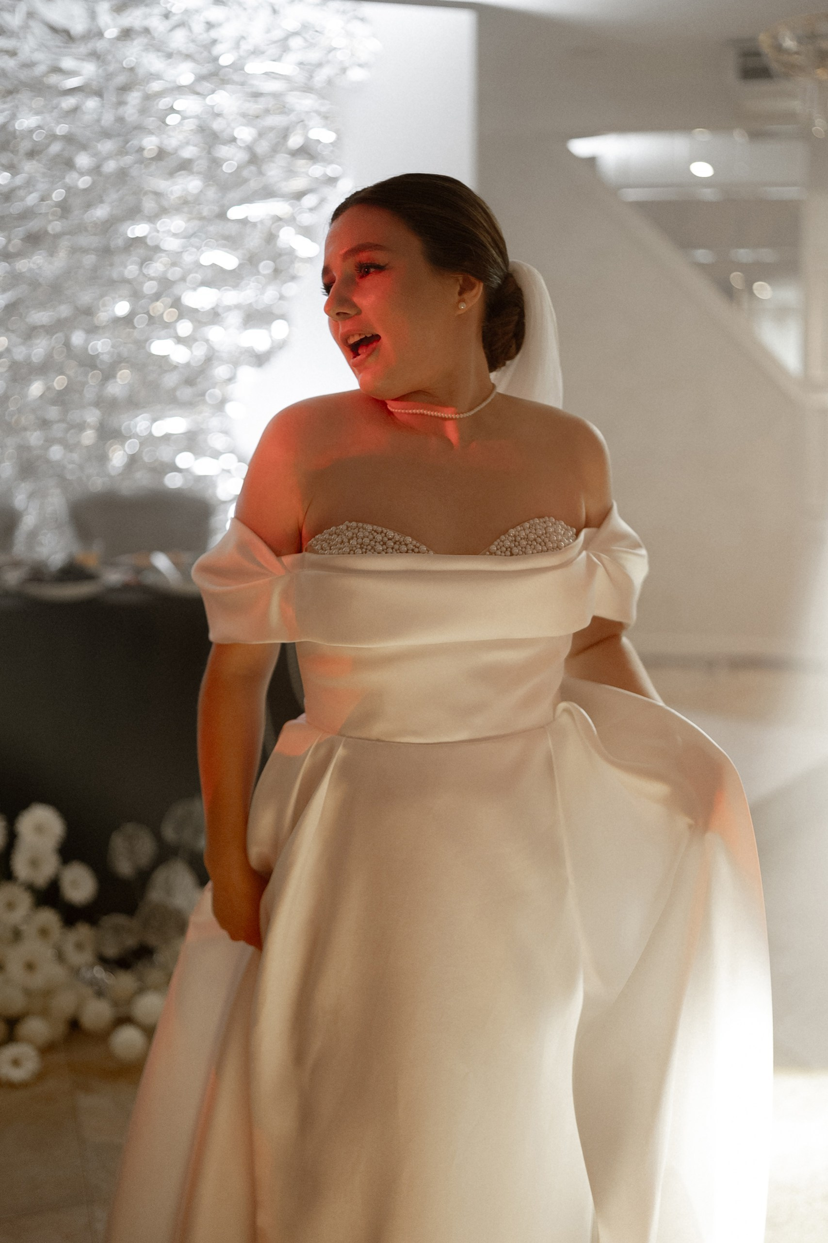 Свадьба Яны и Наримана — это история про чувства без лишних слов. Название «What is Love?» выбрано неслучайно — это любимая песня пары. Именно под неё Яна и Нариман впервые появились перед гостями, задав тон всему вечеру. В этот день все строилось на контрастах: чёрный и серебро, игра фактур от жемчуга до фольги и графичный чёрно-белый дресс-код гостей. Трогательный танец невесты с папой и живые, спонтанные эмоции.